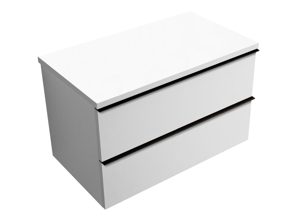 CERANO - Kúpeľňová skrinka pod umývadlo s úchytkou/doskou pod umývadlo Velora - 36 mm - biela matná, čierna úchytka - 99x53x46 cm