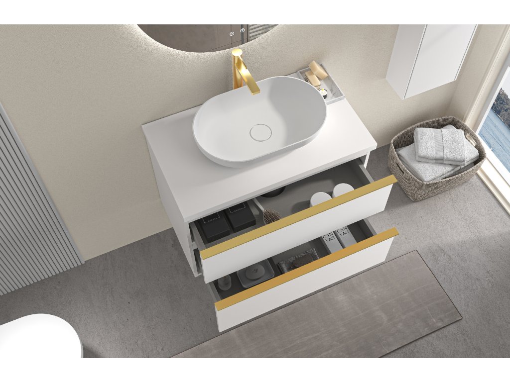 Naše kúpeľňové skrinky prichádzajú už v zmontovanom stave, čo vám ušetrí čas aj námahu pri ich inštalácii. Sú vyrobené z kvalitných materiálov a ponúkajú dostatok úložného priestoru pre všetky vaše potreby.
