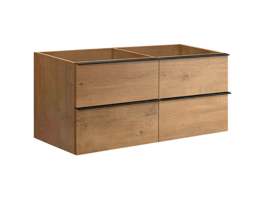CERANO - Kúpeľňová skrinka pod umývadlo s úchytkou Velora - dub medový, čierna úchytka - 158x53x46, 5 cm