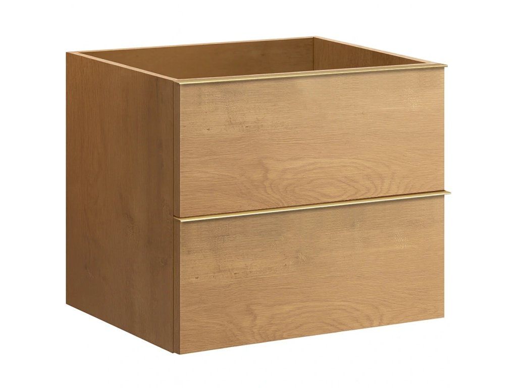 CERANO - Kúpeľňová skrinka pod umývadlo s úchytkou Velora - dub medový, zlatá úchytka - 69x53x46, 5 cm