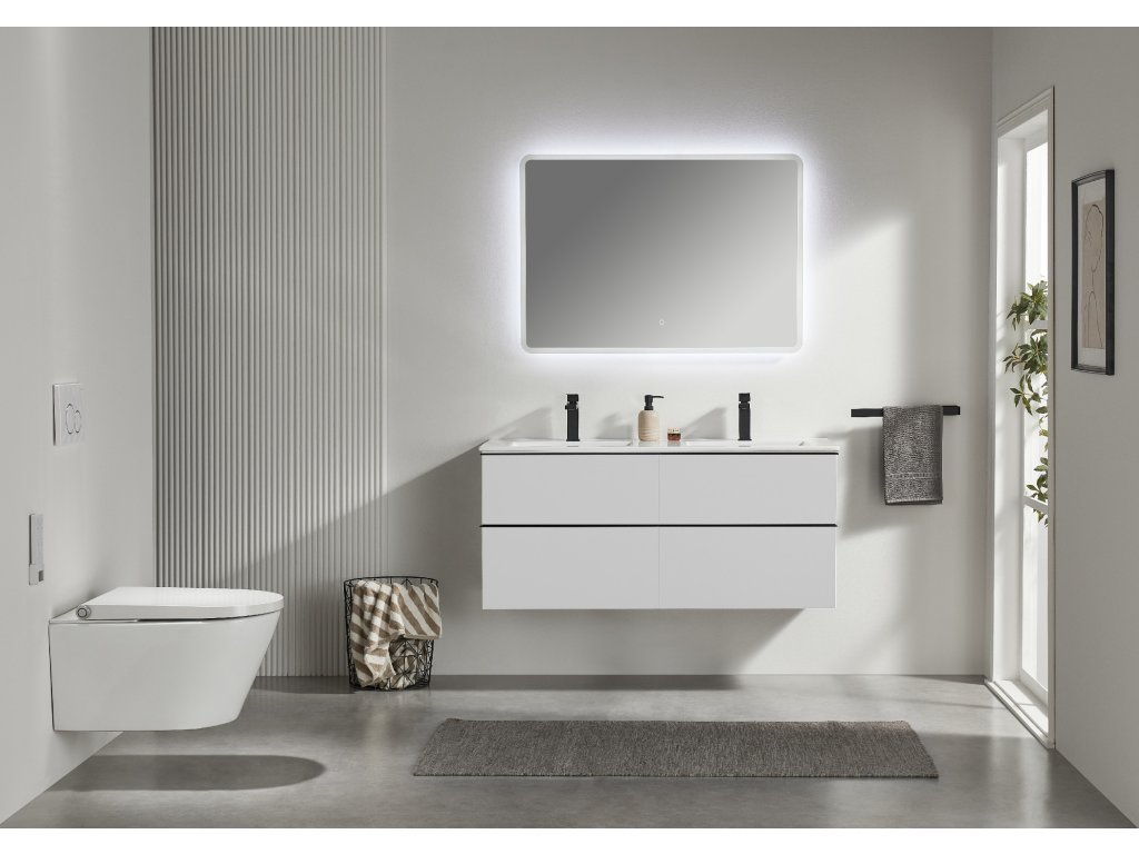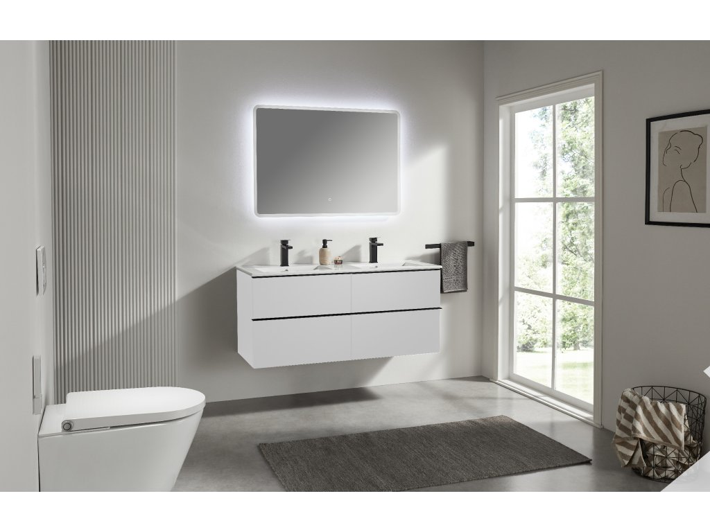CERANO - Kúpeľňová skrinka pod umývadlo s úchytkou Velora + keramické umývadlo Todo - biela matná, čierna úchytka - 119x53x45, 2 cm