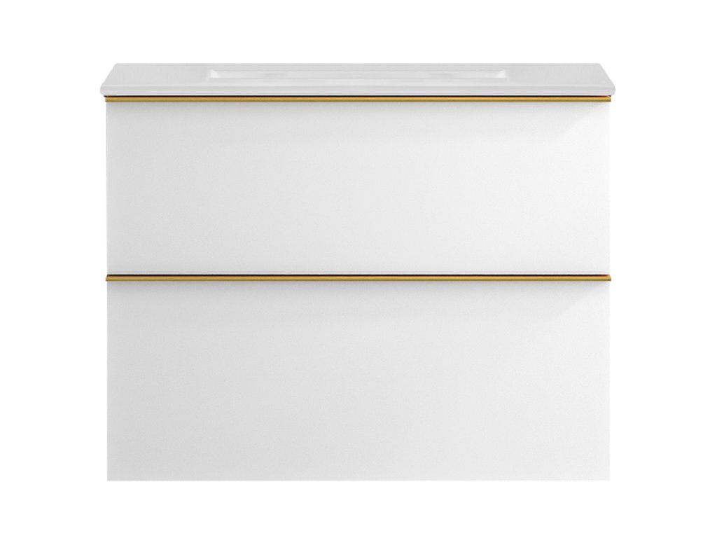 CERANO - Kúpeľňová skrinka pod umývadlo s úchytkou Velora + keramické umývadlo Todo - biela matná, zlatá úchytka - 59x53x46 cm