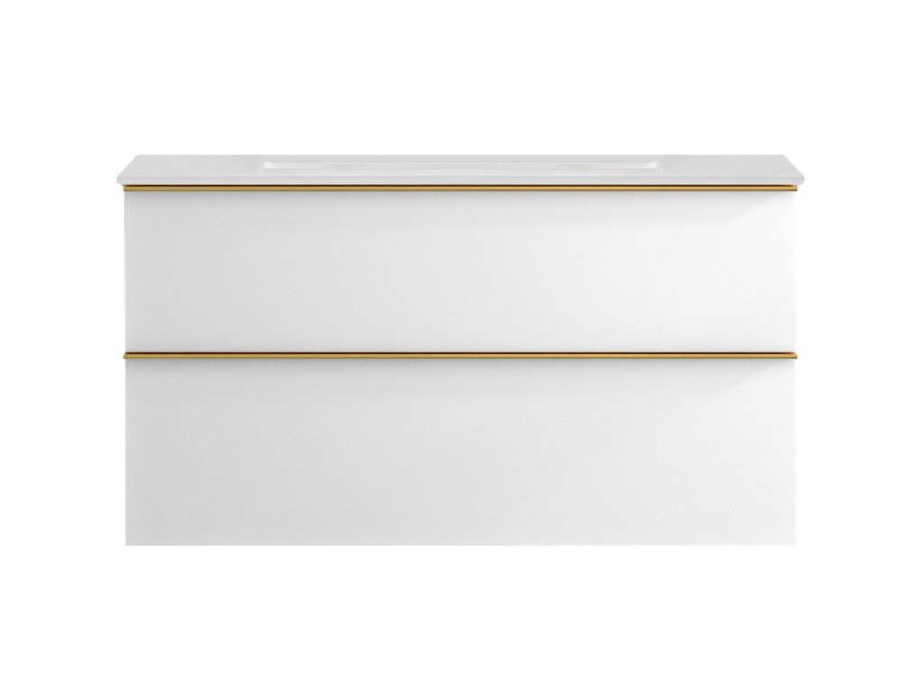 CERANO - Kúpeľňová skrinka pod umývadlo s úchytkou Velora + keramické umývadlo Todo - biela matná, zlatá úchytka - 99x53x46 cm