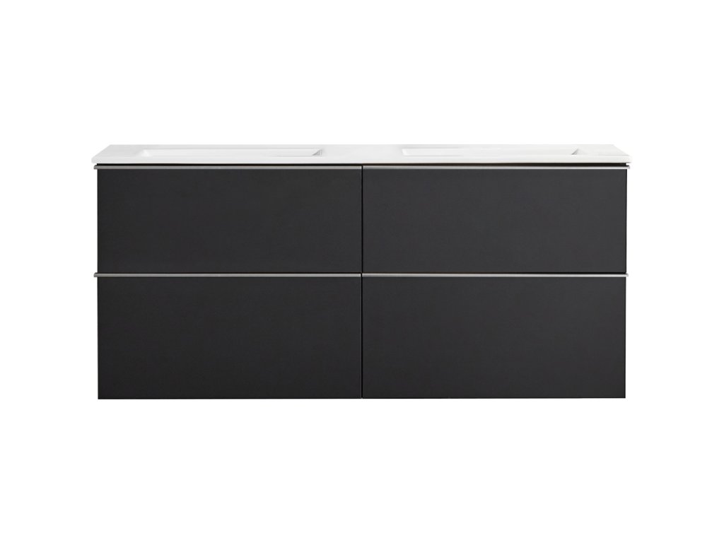 CERANO - Kúpeľňová skrinka pod umývadlo s úchytkou Velora + keramické umývadlo Todo - čierna matná, chrómová úchytka - 119x53x45, 2 cm