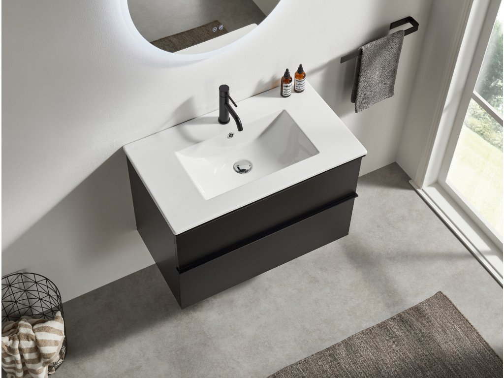 CERANO - Kúpeľňová skrinka pod umývadlo s úchytkou Velora + keramické umývadlo Todo - čierna matná, čierna úchytka - 79x53x46 cm