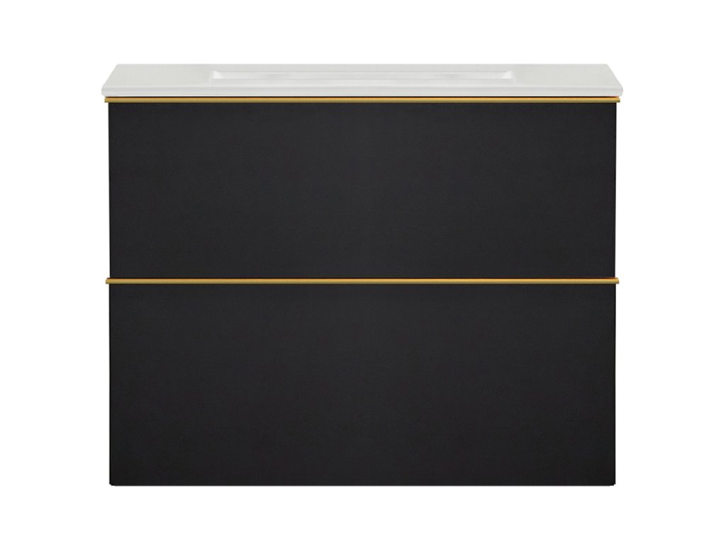 CERANO - Kúpeľňová skrinka pod umývadlo s úchytkou Velora + keramické umývadlo Todo - čierna matná, zlatá úchytka - 59x53x46 cm