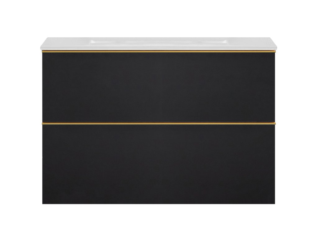 CERANO - Kúpeľňová skrinka pod umývadlo s úchytkou Velora + keramické umývadlo Todo - čierna matná, zlatá úchytka - 69x53x46 cm