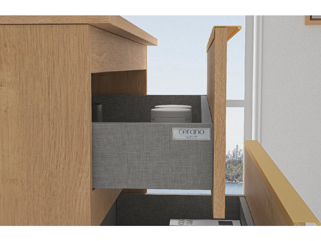 Funkcia tichého dovierania (Quiet Close) zaisťuje, že sa zásuvky zatvárajú hladko a bez hluku. Tento mechanizmus minimalizuje opotrebenie nábytku a prispieva k dlhodobej životnosti skrinky. Umožňuje tiché a pohodlné používanie, čo oceníte najmä v ranných a nočných hodinách.