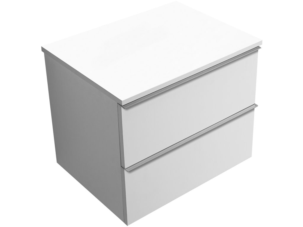 CERANO - Kúpeľňová skrinka pod umývadlo Velora s úchytkou/doskou z liateho mramoru Elanys - 12 mm - biela matná, chrómová úchytka - 59x53x46 cm