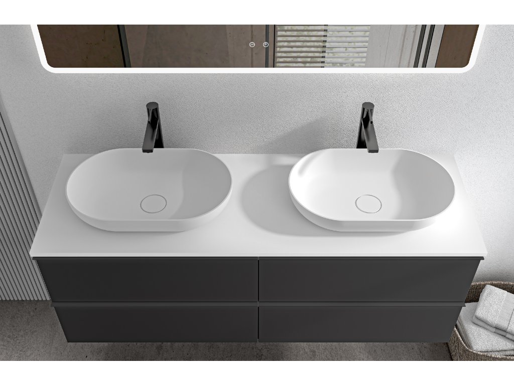 CERANO - Kúpeľňová skrinka pod umývadlo Velora s úchytkou/doskou z liateho mramoru Elanys - 12 mm - čierna matná, čierna úchytka - 138x53x45, 2 cm