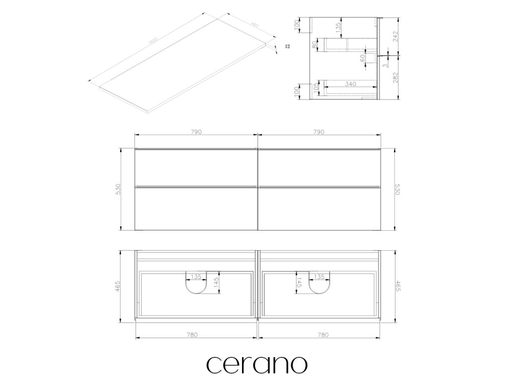 CERANO - Kúpeľňová skrinka pod umývadlo Velora s úchytkou/doskou z liateho mramoru Elanys - 12 mm - čierna matná, čierna úchytka - 158x53x45, 2 cm