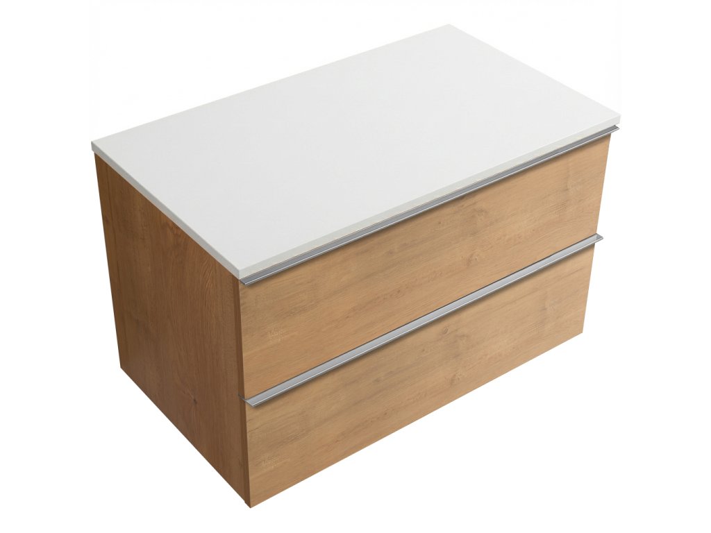 Kúpeľňové skrinky sú vyrobené z MDF lamina (stredne hustá drevovláknitá doska) s nalisovanou melamínovou fóliou, ktorá je odolná voči vlhkosti, poškriabaniu, UV žiareniu a bežným čistiacim prostriedkom. Povrch je hladký, tvrdý, homogénny a ľahko sa čistí. MDF dosky sa nekrútia ako masívne drevo. Pokiaľ dôjde k mechanickému narušeniu laminácie, samotné MDF jadro môže navlhnúť.