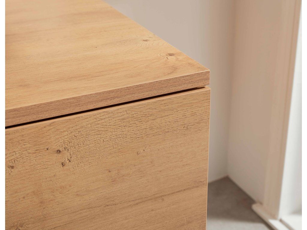 Vďaka integrovanému soft-close mechanizmu sa dvierka a zásuvky zatvárajú plynulo a ticho – hydraulický doraz tlmí náraz, zabraňuje búchaniu a znižuje opotrebenie, takže nábytok vydrží dlhšie a používanie je pohodlné.