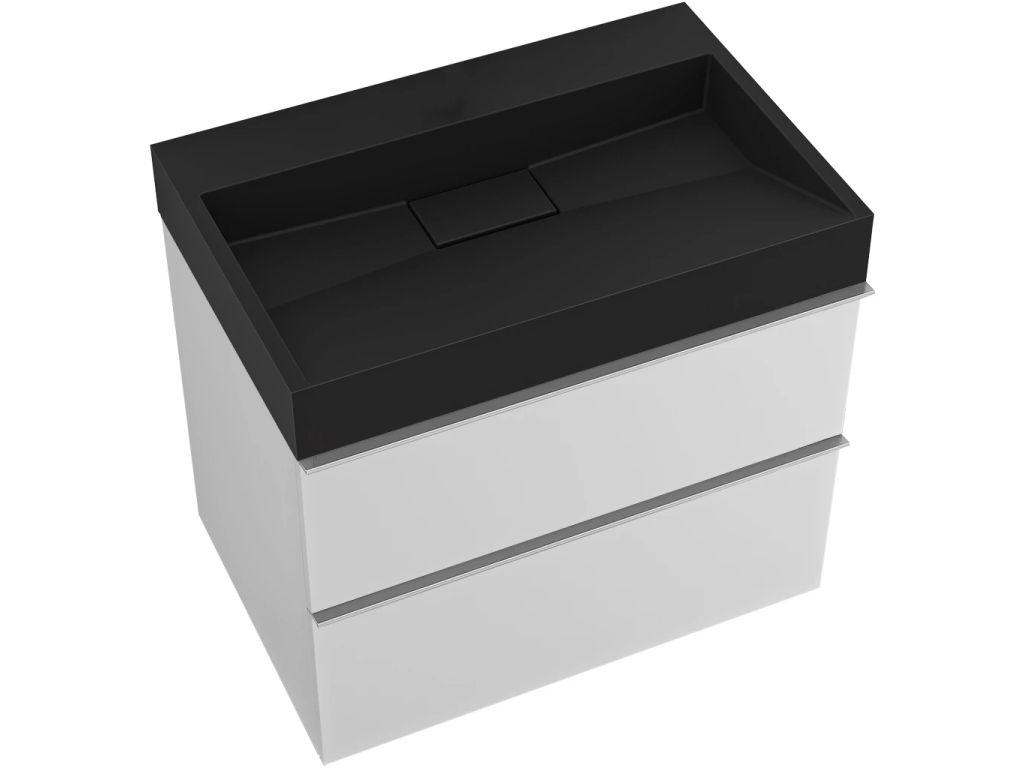 CERANO - Kúpeľňová skrinka Velora - biela matná, úchytka chróm + umývadlo z lit. mramoru Vita - čierna matná - 70x63x46, 5 cm