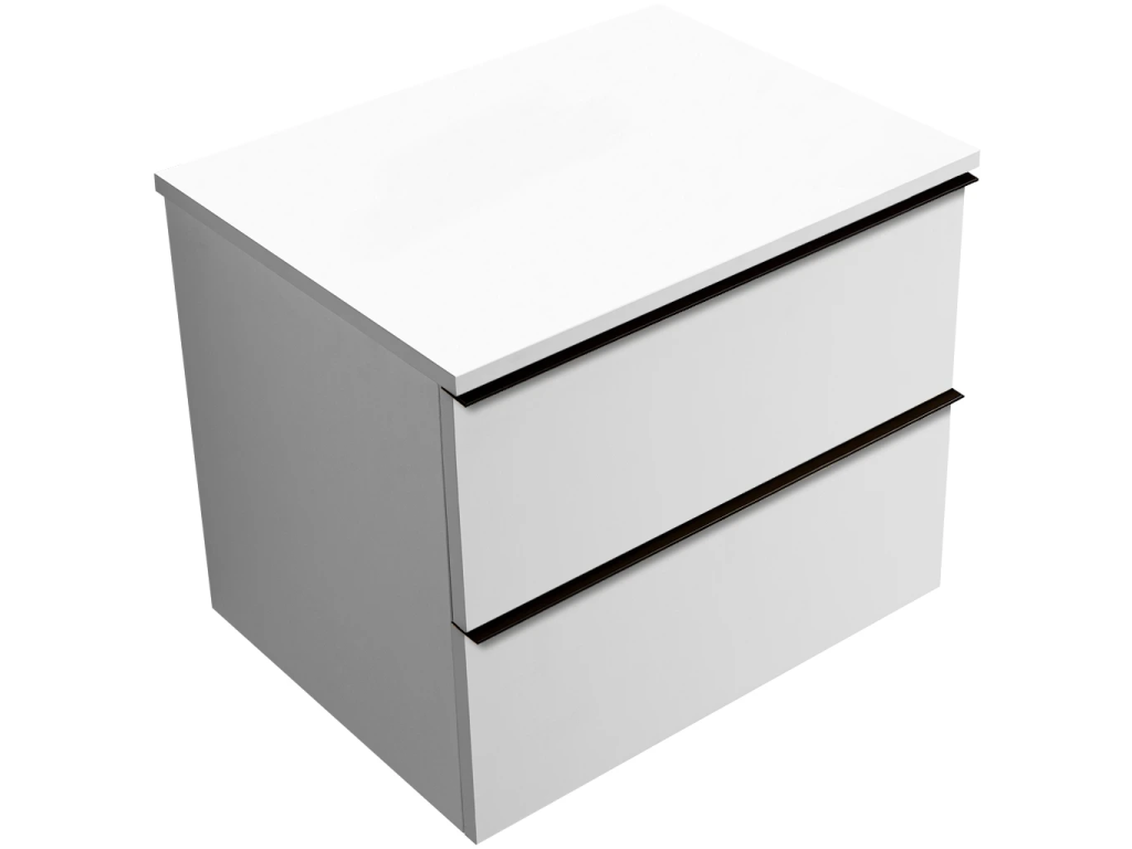 CERANO - Kúpeľňová skrinka Velora - biela matná, úchytka čierna + doska pod umývadlo Navira Slim - 18 mm - 70x54, 8x46, 5 cm