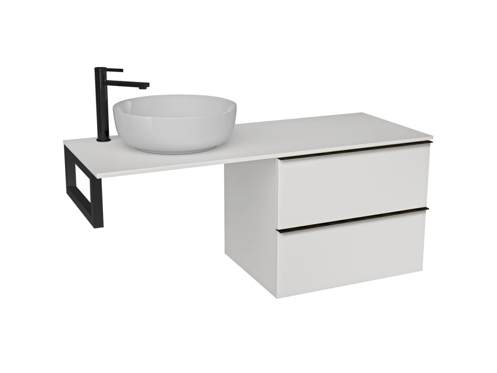 CERANO - Kúpeľňová skrinka Velora - biela matná, úchytka čierna + doska pod umývadlo z lit. mramoru Elanys - 12 mm + konzola čierna - 160x54,2x46,5 cm