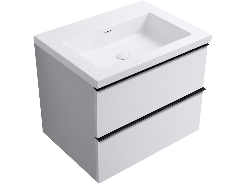 CERANO - Kúpeľňová skrinka Velora - biela matná, úchytka čierna + umývadlo z lit. mramoru Ovo - biela lesklá - 70,5x58x46,5 cm