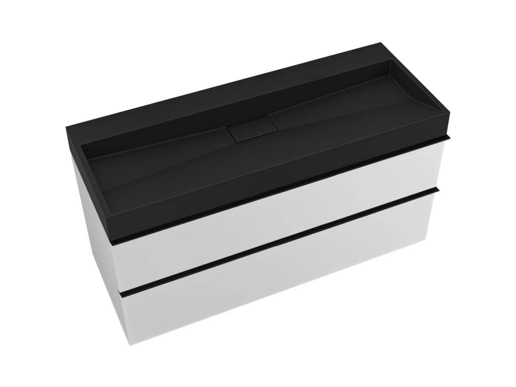 CERANO - Kúpeľňová skrinka Velora - biela matná, úchytka čierna + umývadlo z lit. mramoru Vita - čierna matná - 100x63x46, 5 cm