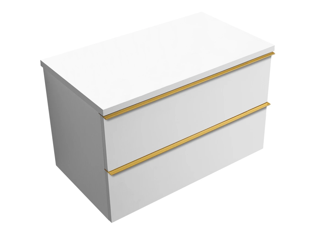 CERANO - Kúpeľňová skrinka Velora - biela matná, úchytka zlatá + doska pod umývadlo Navira Pro - 36 mm - 100x56,6x46,5 cm