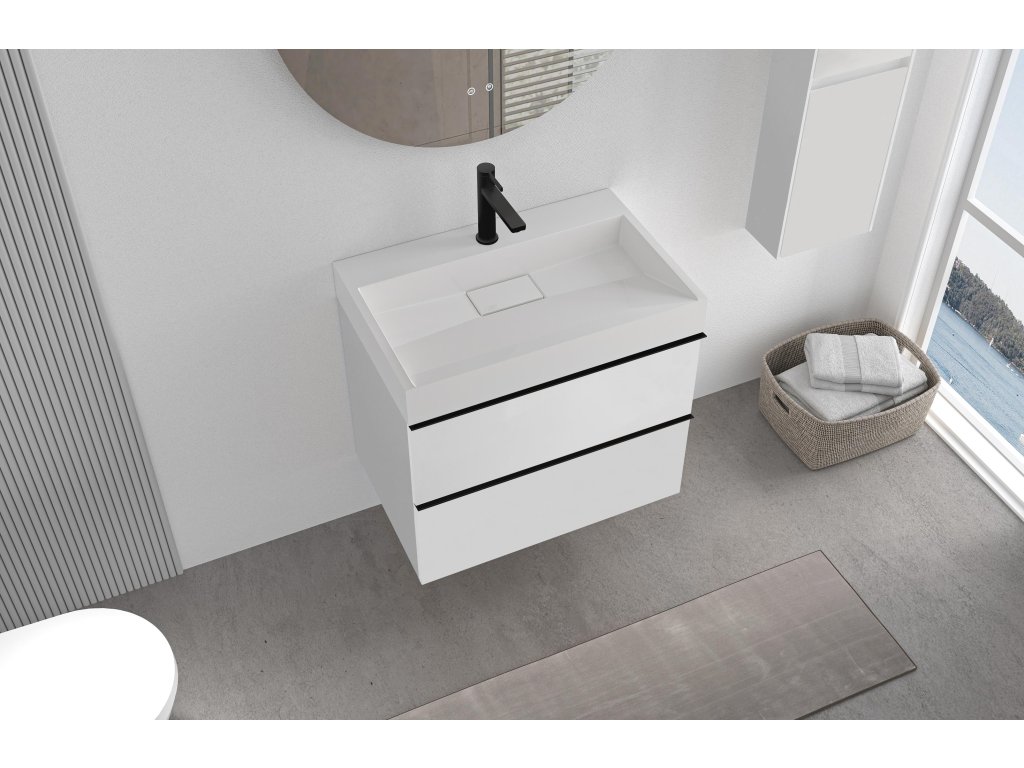 CERANO - Kúpeľňová skrinka Velora - biela matná - úchytka čierna + umývadlo s otvorom pre batériu z liateho mramoru Vita - biela lesklá - 70x53x46 cm