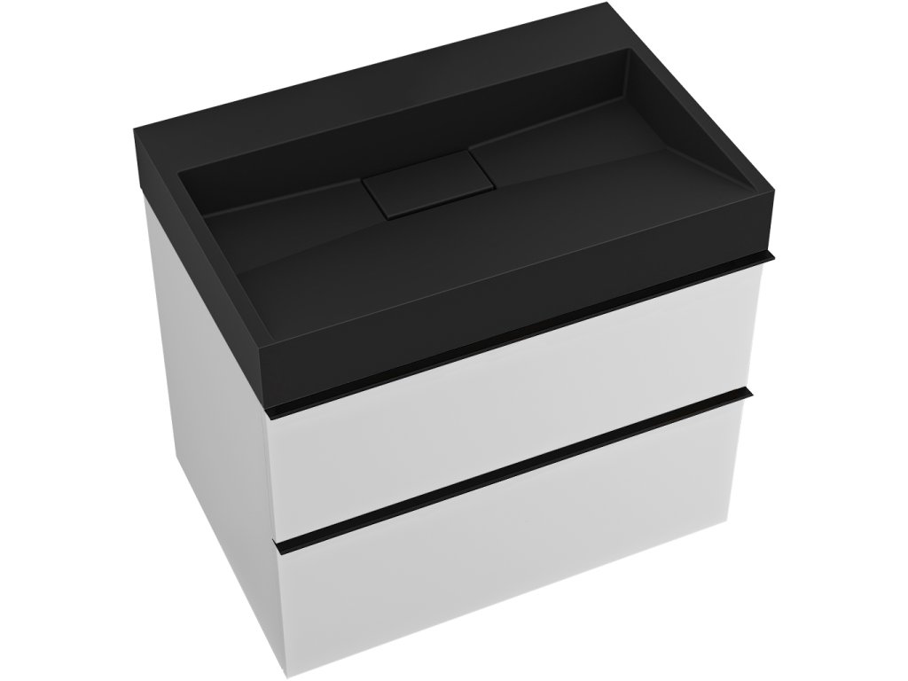 CERANO - Kúpeľňová skrinka Velora - biela matná - úchytka čierna + umývadlo z liateho mramoru Vita - čierna - 70x53x46 cm