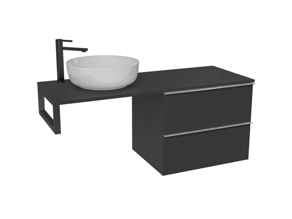 CERANO - Kúpeľňová skrinka Velora - čierna matná, úchytka chróm + doska pod umývadlo Navira Slim - 18 mm + konzola čierna - 140x54,8x46,5 cm