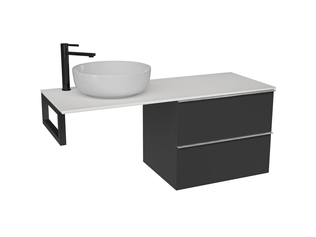CERANO - Kúpeľňová skrinka Velora - čierna matná, úchytka chróm + doska pod umývadlo z lit. mramoru Elanys - 12 mm + konzola čierna - 160x54,2x46,5 cm