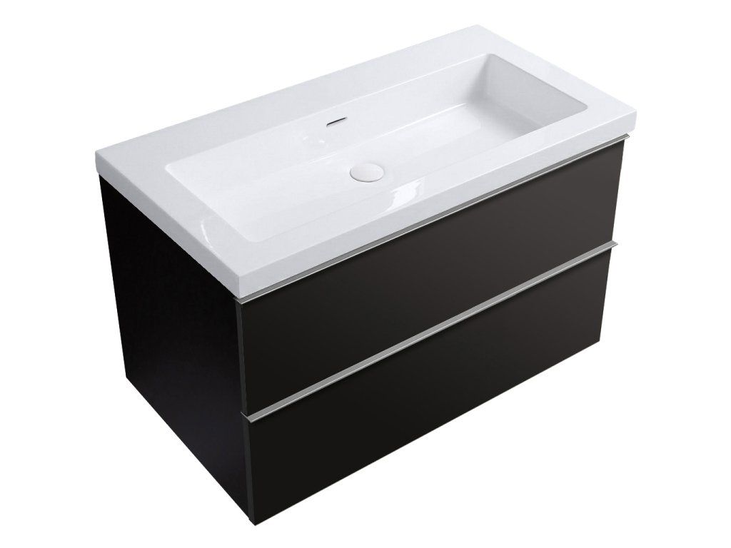 CERANO - Kúpeľňová skrinka Velora - čierna matná, úchytka chróm + umývadlo z lit. mramoru Ovo - biela lesklá - 100,5x58x46,5 cm