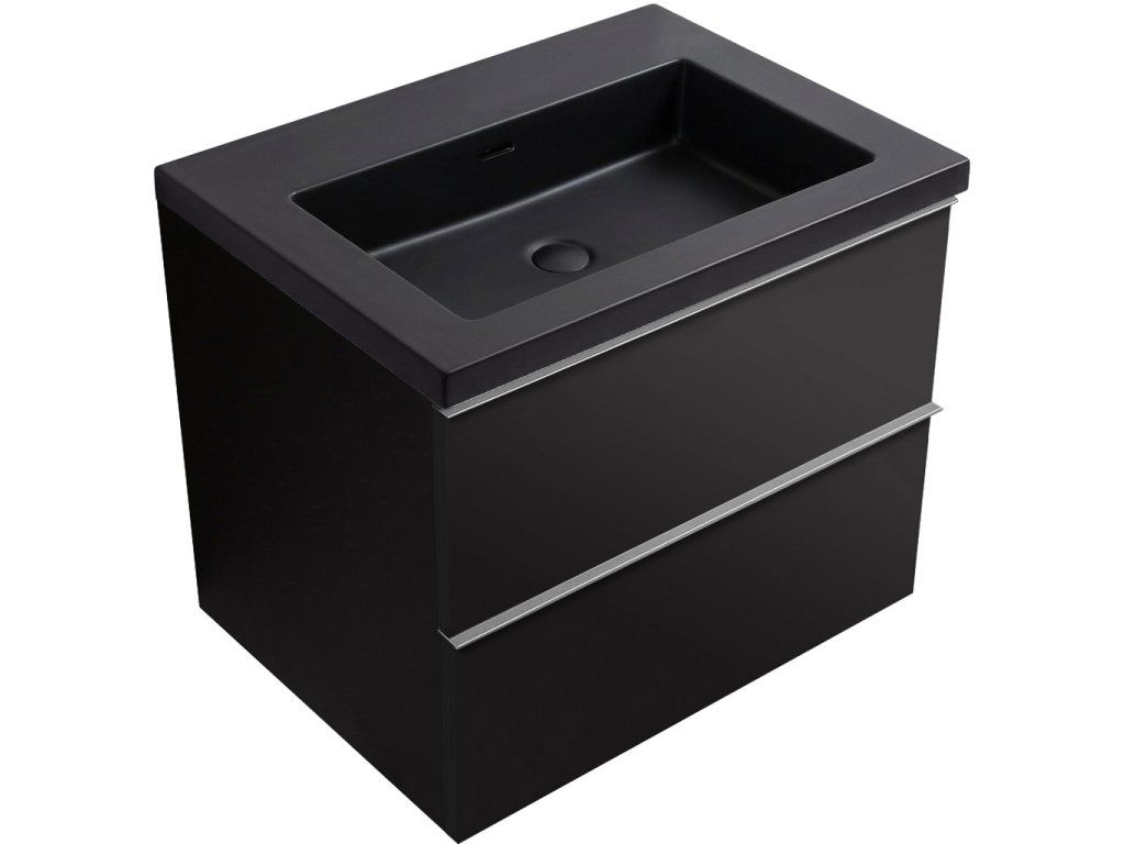 CERANO - Kúpeľňová skrinka Velora - čierna matná, úchytka chróm + umývadlo z lit. mramoru Ovo - čierna matná - 60,5x58x46,5 cm