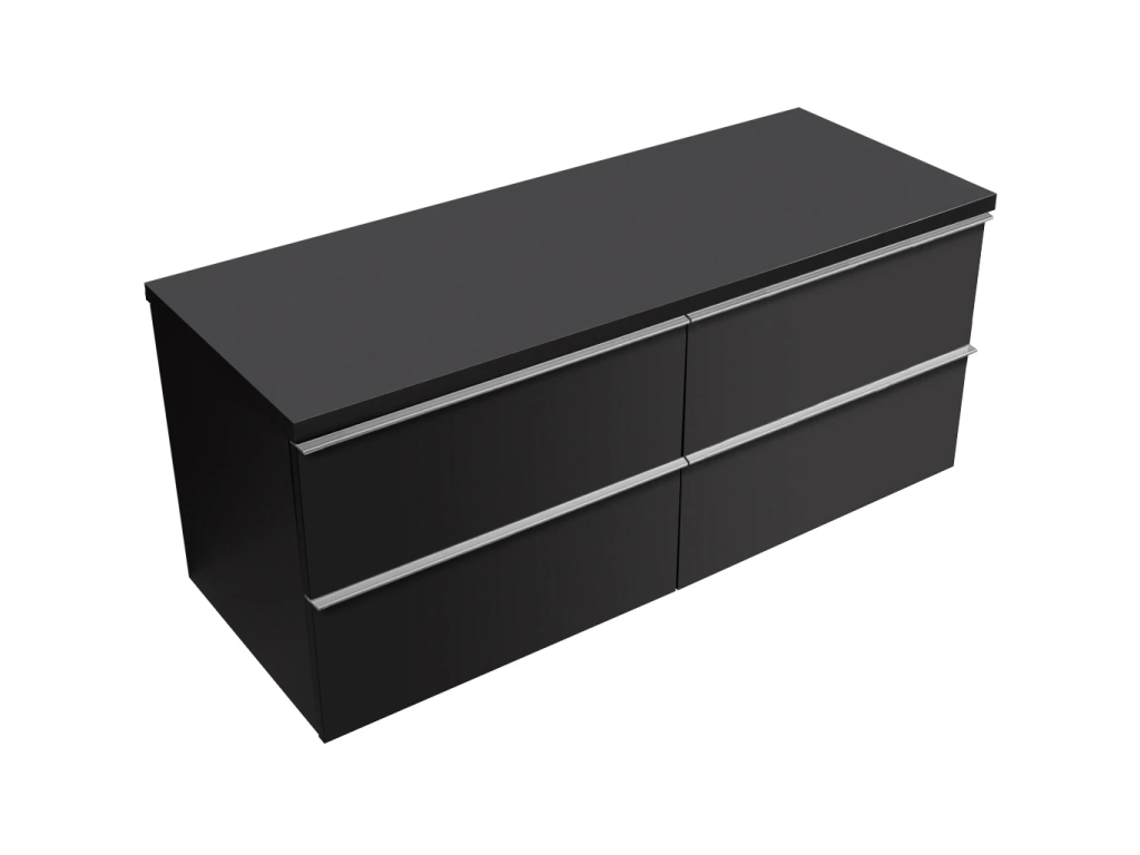 CERANO - Kúpeľňová skrinka Velora - čierna matná, úchytka chrómová + doska pod umývadlo Navira Pro - 36 mm - 160x56,6x46,5 cm
