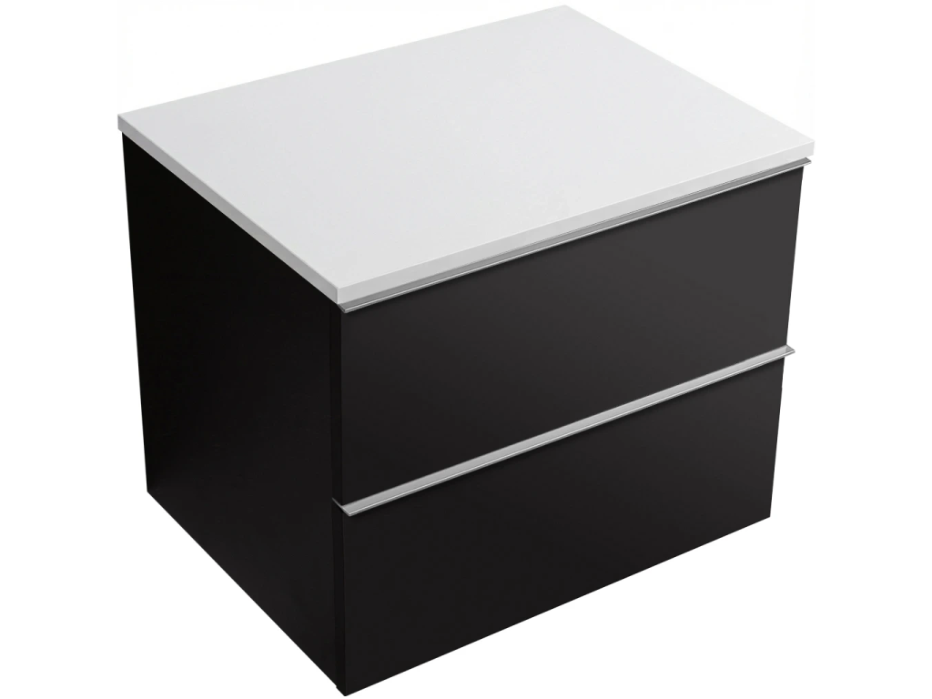 CERANO - Kúpeľňová skrinka Velora - čierna matná, úchytka chrómová + doska z lit. mramoru Elanys - 12 mm - biela matná - 70x54,2x46,5 cm