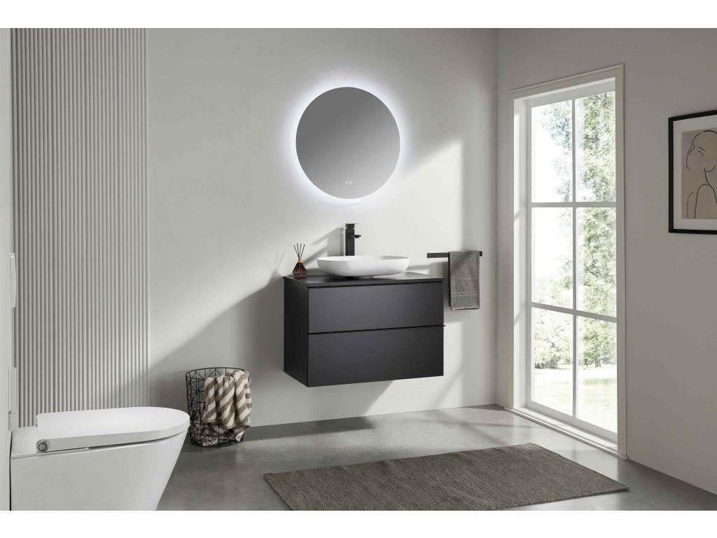 CERANO - Kúpeľňová skrinka Velora - čierna matná, úchytka čierna + doska pod umývadlo Navira Slim - 18 mm - 80x54, 8x46, 5 cm