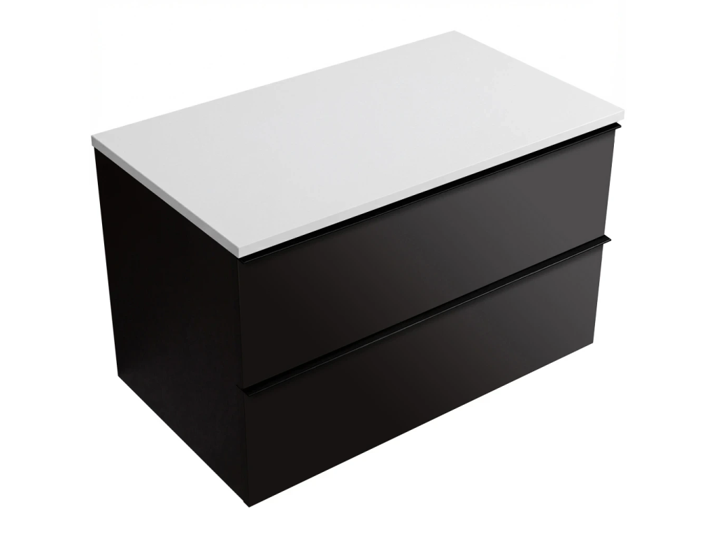 CERANO - Kúpeľňová skrinka Velora - čierna matná, úchytka čierna + doska z lit. mramoru Elanys - 12 mm - biela matná - 100x54,2x46,5 cm
