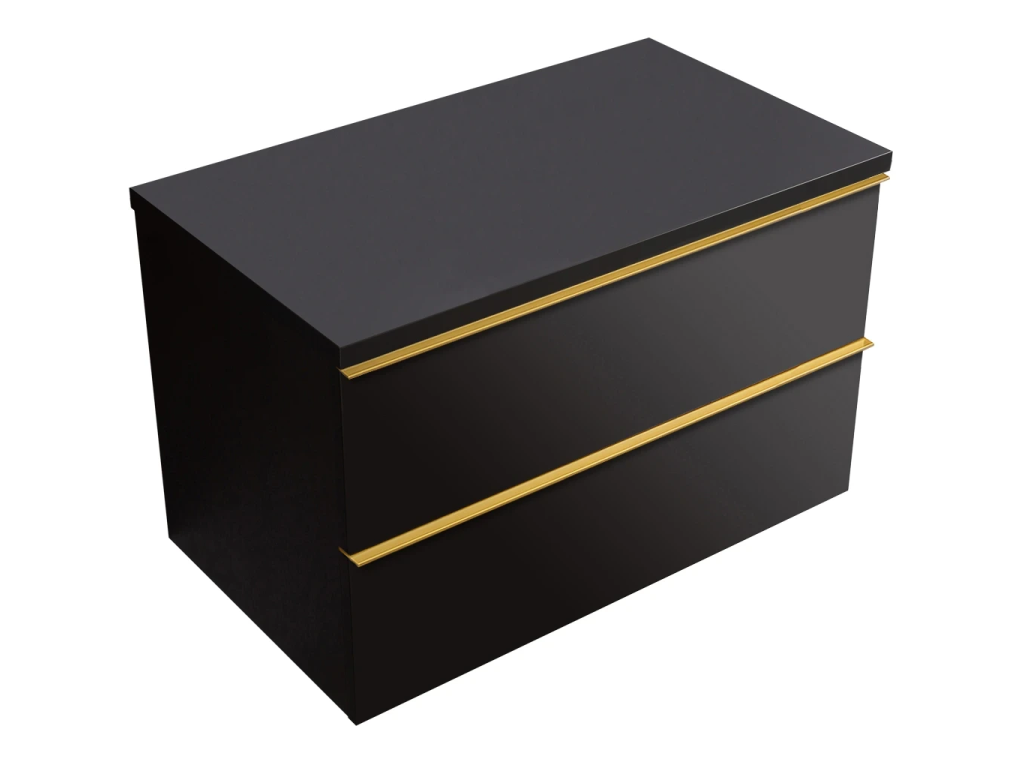 CERANO - Kúpeľňová skrinka Velora - čierna matná, úchytka zlatá + doska pod umývadlo Navira Pro - 36 mm - 80x56,6x46,5 cm