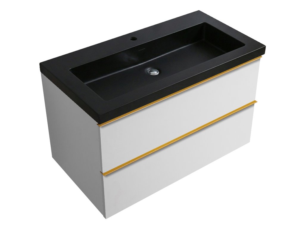 CERANO - Kúpeľňová skrinka Velora - čierna matná - úchytka zlatá + keramické umývadlo Ovo - biela matná - 79x53x46 cm