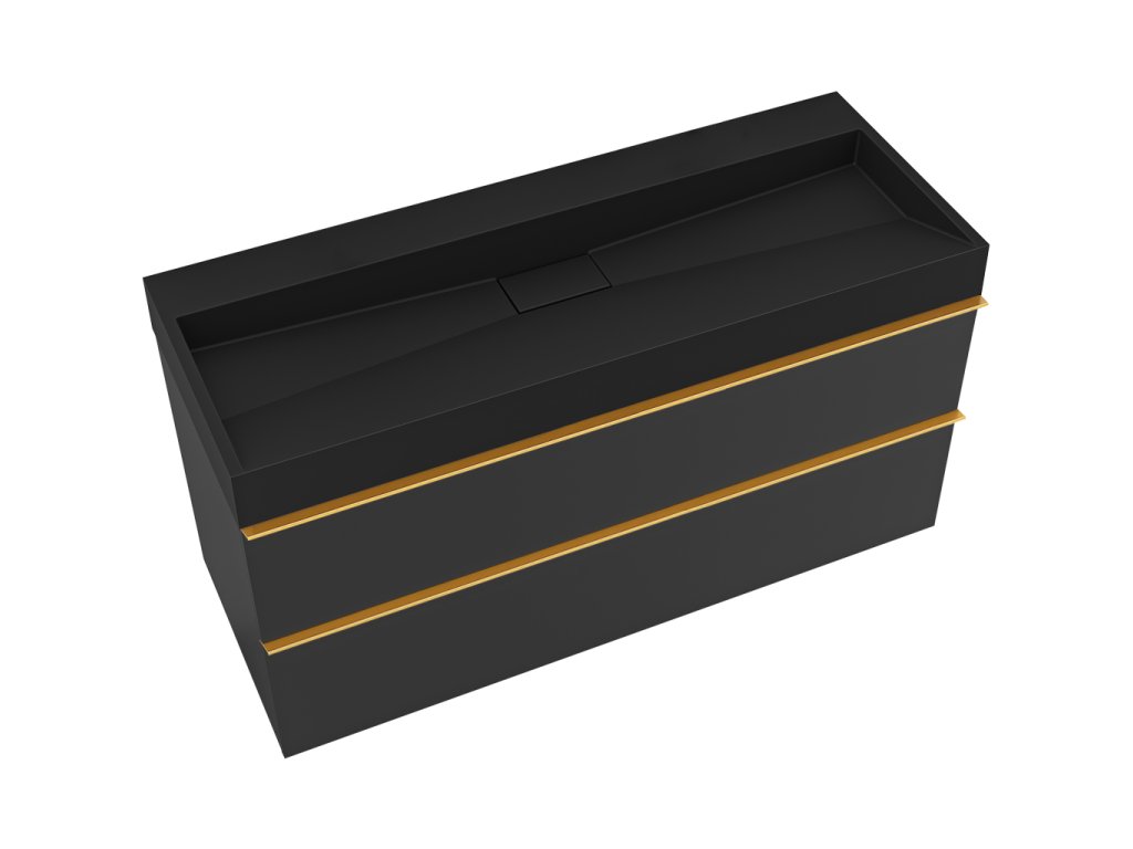 CERANO - Kúpeľňová skrinka Velora - čierna matná - úchytka zlatá + umývadlo z liateho mramoru Vita - čierna - 100x53x46 cm