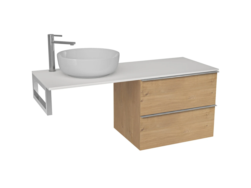 CERANO - Kúpeľňová skrinka Velora - dub medový, úchytka chróm + doska pod umývadlo z lit. mramoru Elanys - 12 mm + konzola chróm - 120x54,2x46,5 cm