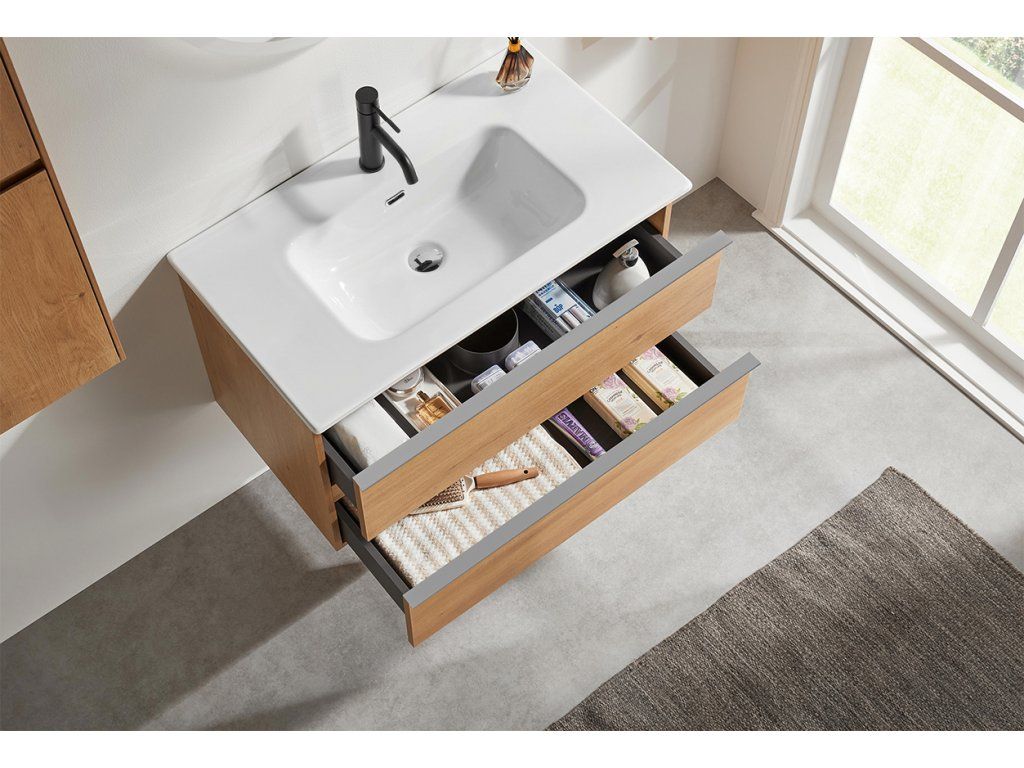 Vďaka úložnému priestoru je tento kúpeľňový nábytok veľmi praktickým pomocníkom do každej kúpeľne. Kombinácia inovatívneho a spoľahlivého riešenia, na ktorom si naša značka zakladá, dala vzniknúť kvalitnému a zároveň veľmi modernému kúpeľňovému nábytku.