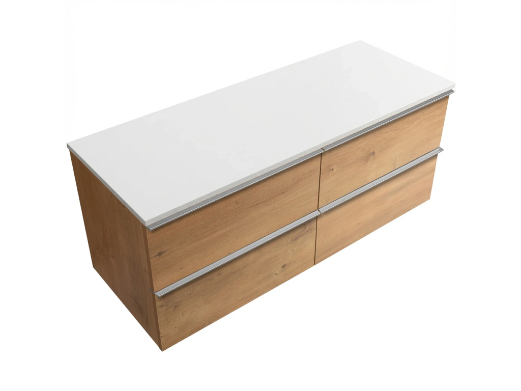 CERANO - Kúpeľňová skrinka Velora - dub medový, úchytka chrómová + doska z lit. mramoru Elanys - 12 mm - biela matná - 160x54,2x46,5 cm