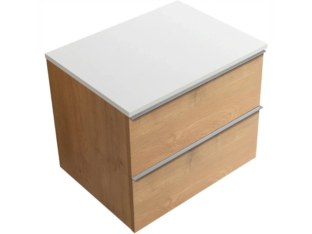 CERANO - Kúpeľňová skrinka Velora - dub medový, úchytka chrómová + doska z lit. mramoru Elanys - 12 mm - biela matná - 70x54,2x46,5 cm