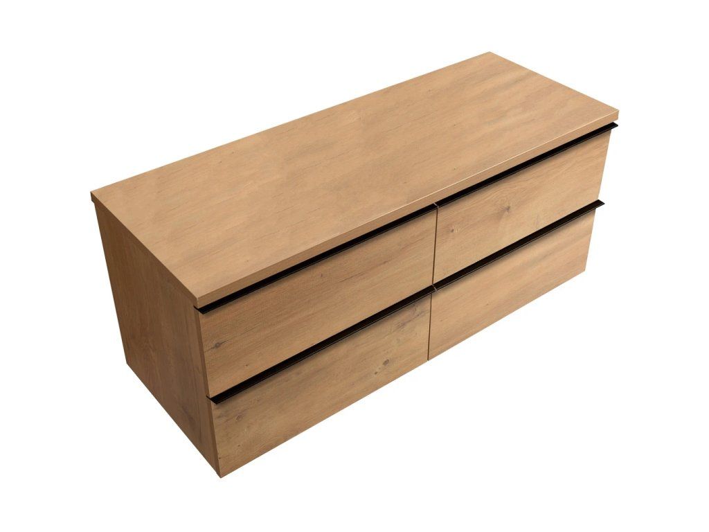 CERANO - Kúpeľňová skrinka Velora - dub medový, úchytka čierna + doska pod umývadlo Navira Pro - 36 mm - 160x56,6x46,5 cm