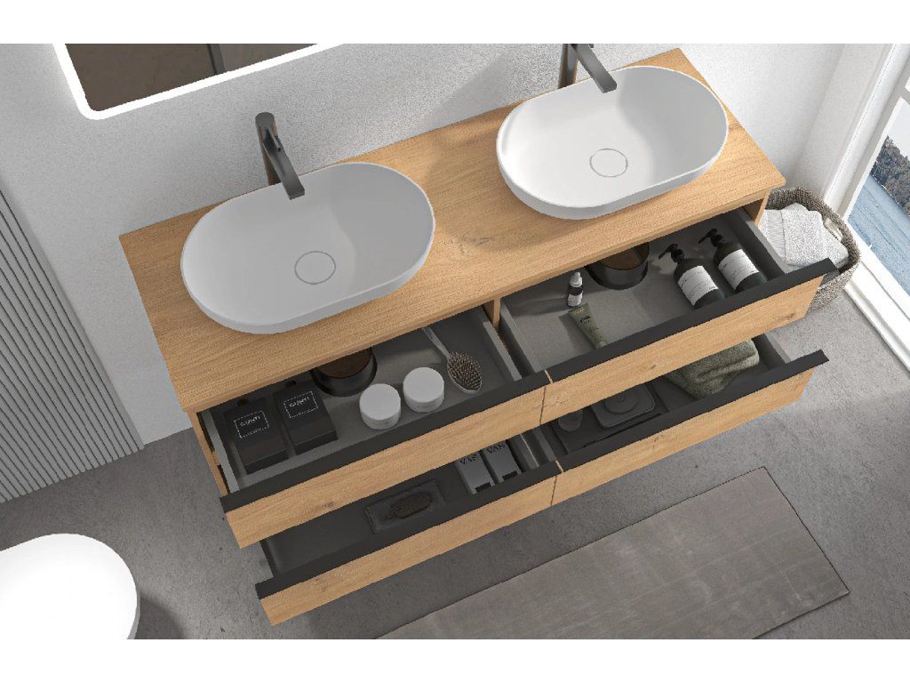 Vďaka úložnému priestoru je tento kúpeľňový nábytok veľmi praktickým pomocníkom do každej kúpeľne. Kombinácia inovatívneho a spoľahlivého riešenia, na ktorom si naša značka zakladá, dala vzniknúť kvalitnému a zároveň veľmi modernému kúpeľňovému nábytku.