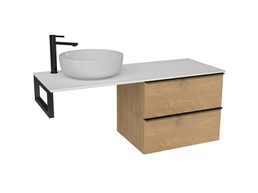 CERANO - Kúpeľňová skrinka Velora - dub medový, úchytka čierna + doska pod umývadlo z lit. mramoru Elanys - 12 mm + konzola čierna - 120x54,2x46,5 cm