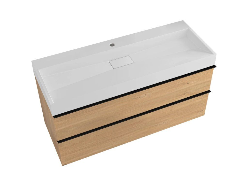 CERANO - Kúpeľňová skrinka Velora - dub medový, úchytka čierna + umývadlo z lit. mramoru s otvorom Vita - biela matná - 100x63x46, 5 cm