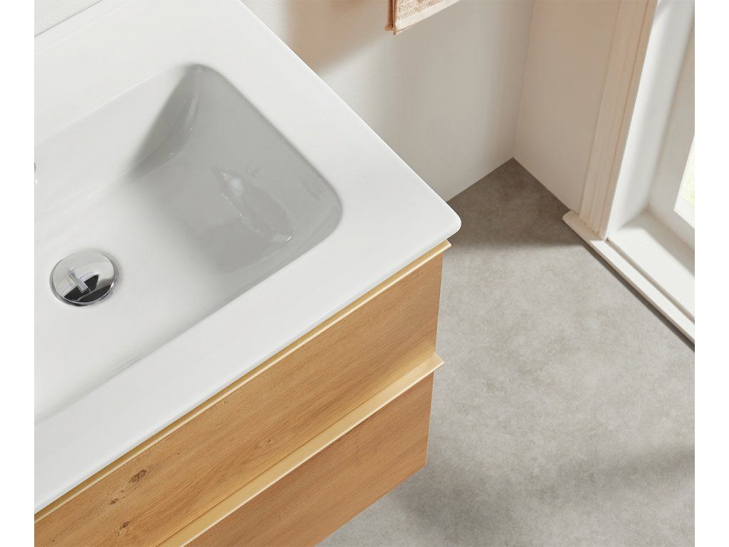 CERANO - Kúpeľňová skrinka Velora - dub medový, úchytka zlatá + keramické umývadlo Novo - biela lesklá - 121x54,5x46,5 cm
