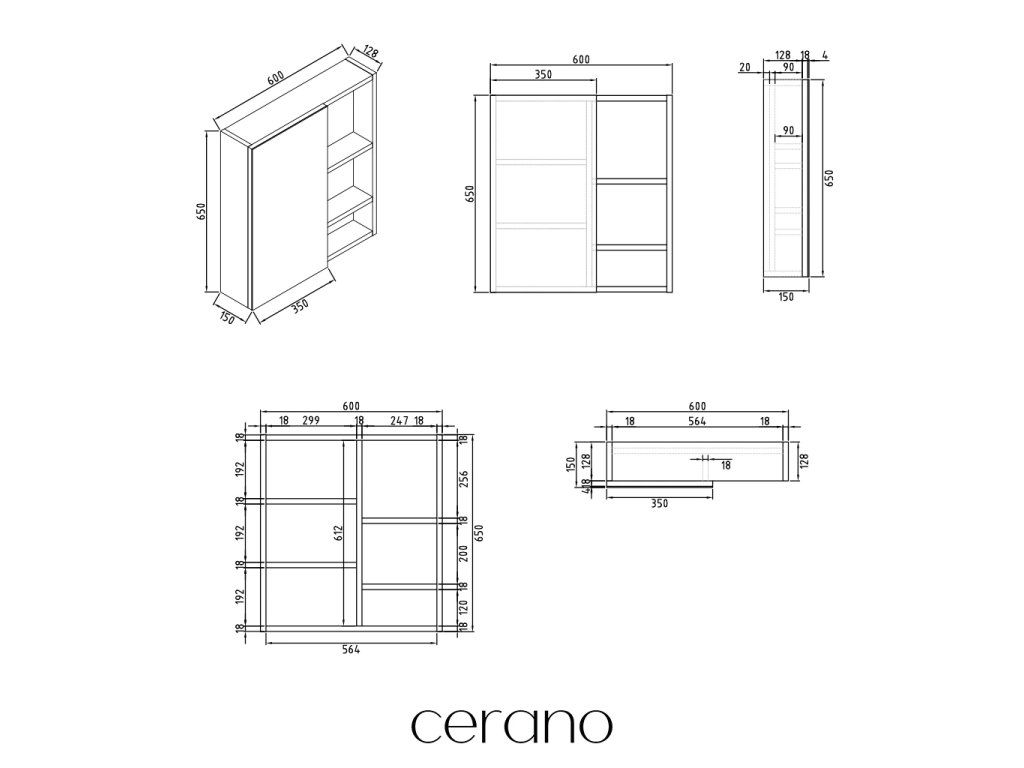 CERANO - Kúpeľňová zrkadlová skrinka Orea - biela matná - 60x65x15 cm