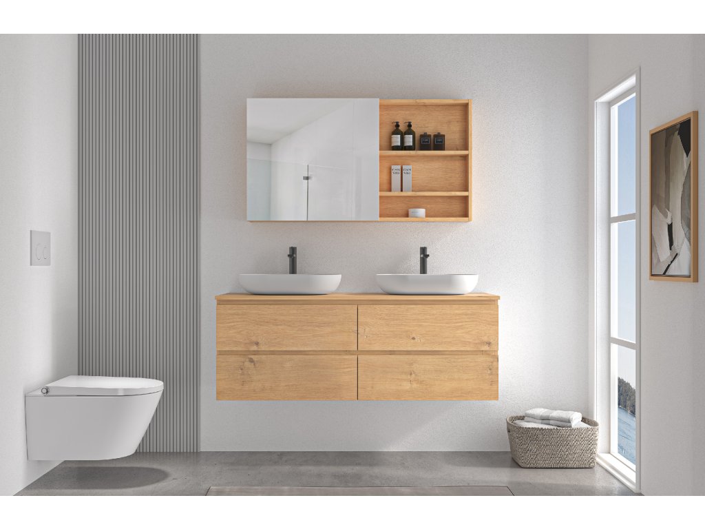 CERANO - Kúpeľňová zrkadlová skrinka Orea - dub medový - 120x65x15 cm