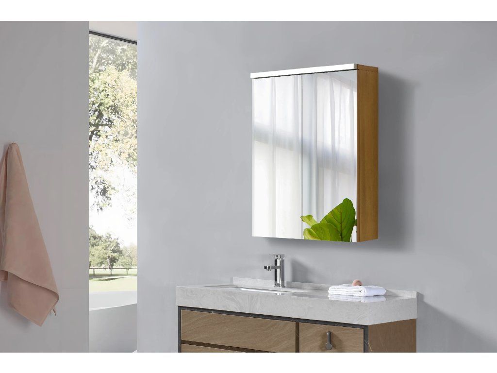 CERANO - Kúpeľňová zrkadlová skrinka s LED osvetlením Avia - dub medový - 55x70x16, 5 cm