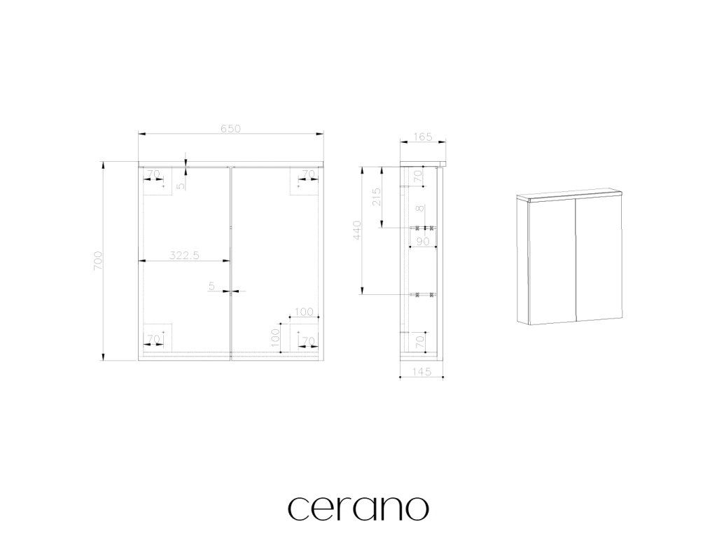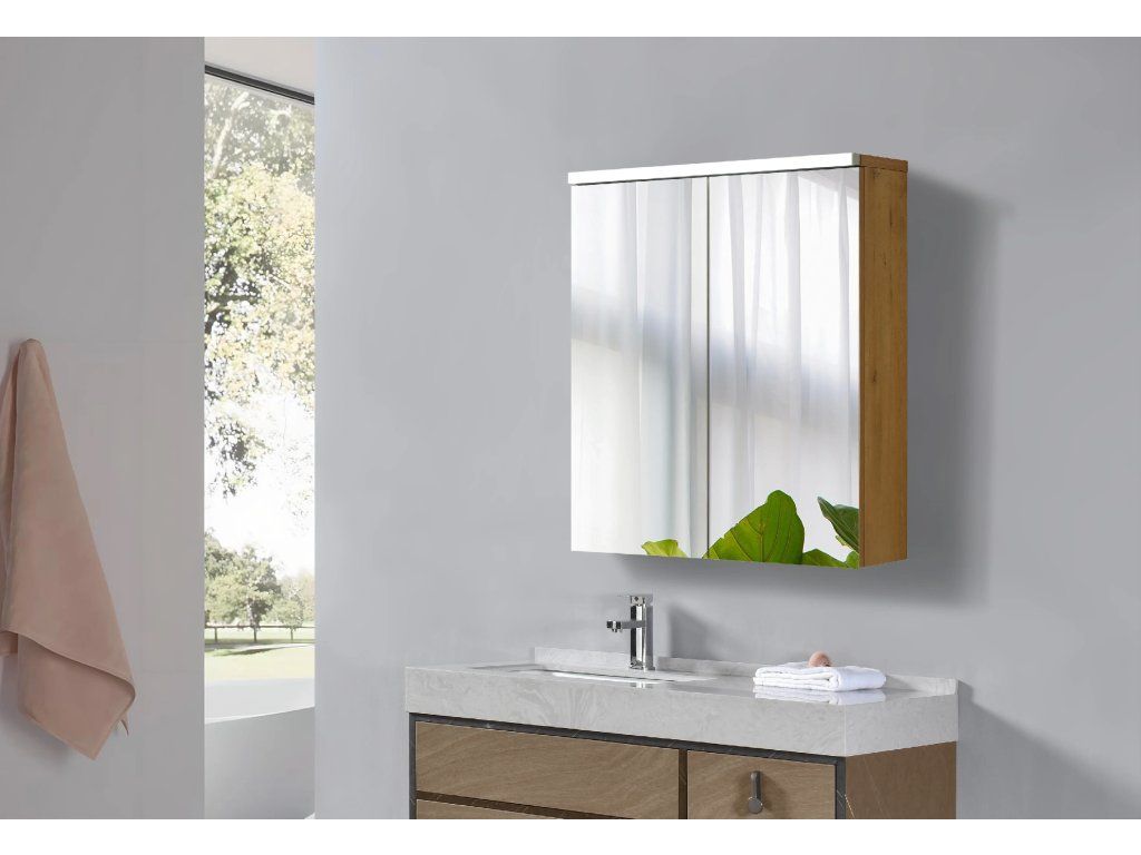 CERANO - Kúpeľňová zrkadlová skrinka s LED osvetlením Avia - dub medový - 65x70x16, 5 cm
