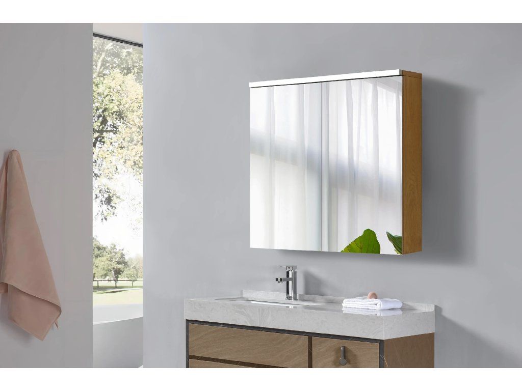 CERANO - Kúpeľňová zrkadlová skrinka s LED osvetlením Avia - dub medový - 75x70x16, 5 cm